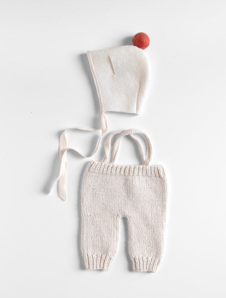Large Outfit - hand knit Overalls & Wool Bonnet