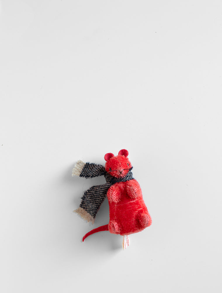 Hand Dyed Red Mohair Mouse with Woolen Scarf