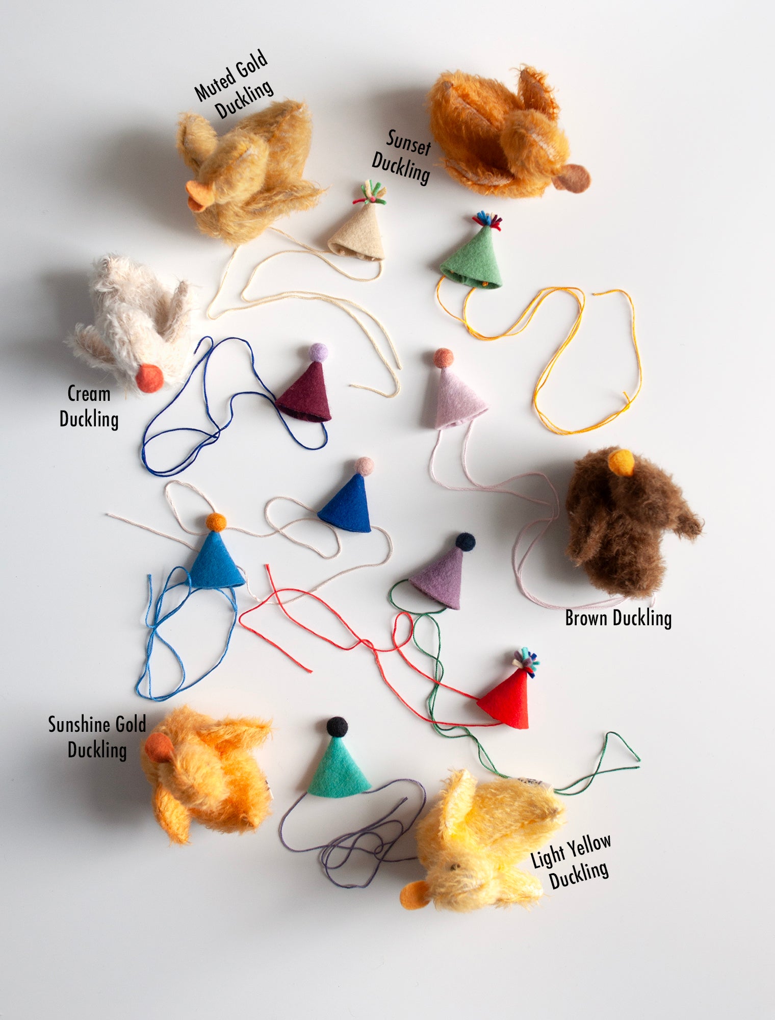 Mohair Ducklings ready for a celebration donning a wool party hat. Add the Hat color of your choice HERE. Add code PARTY at checkout. If you don't add a party hat with your order, I'll choose one for you here in the studio :)