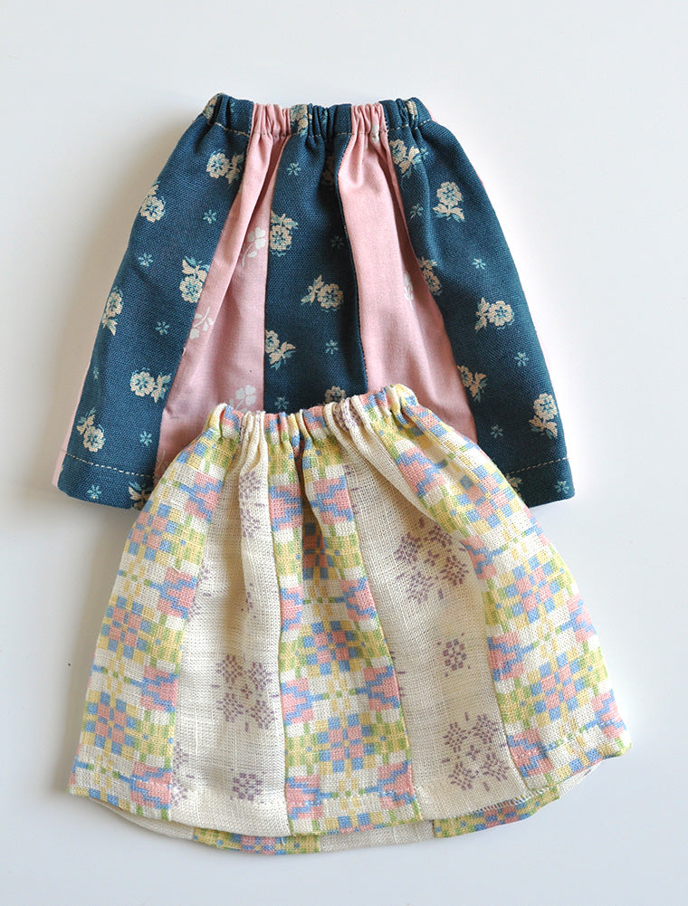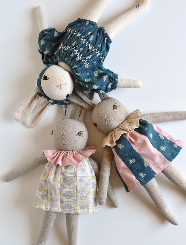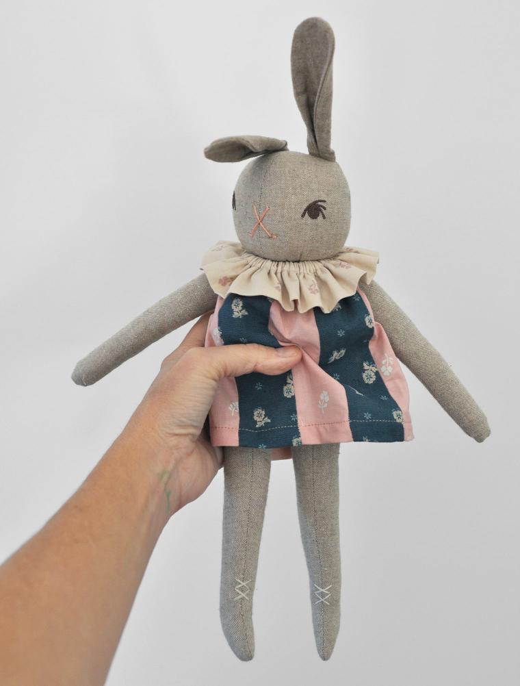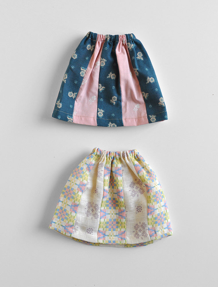 Apolina's much loved patchwork scaled down for the Polka Dot Club. These striped dresses in Apolina's much loved prints have easy on-off elastic at neck and openings for Polka Dot Club medium rabbits arms to easily fit though. Style these as long skirts or dresses as intended.