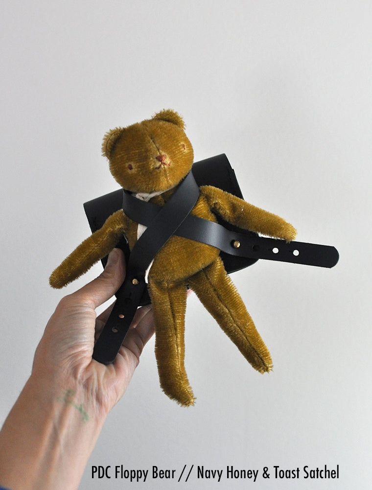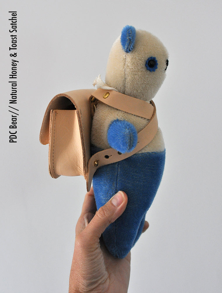 Honey & Toast Ellison Satchel scaled down for the PDC- Fits most PDC toys either crisscrossed over chest (for a secure fit) or slipped over the shoulder. See notes and photos for details on fit.
