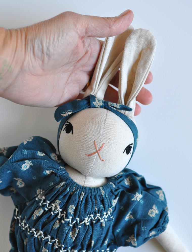 NEW RABBITS HANDMADE IN INDIA. These Rabbits are the same size and look you'd expect from the POLKA DOT CLUB, but with a slightly different feel. Machine embroidered eyes make them constantly cute. Lighter weight woven cotton fabric and softer stuffing make them deliciously squishable. Hand Embroidered nose and ankles make each one unique and uniquely yours- Made exclusively for the PDC by our artisan team in India.