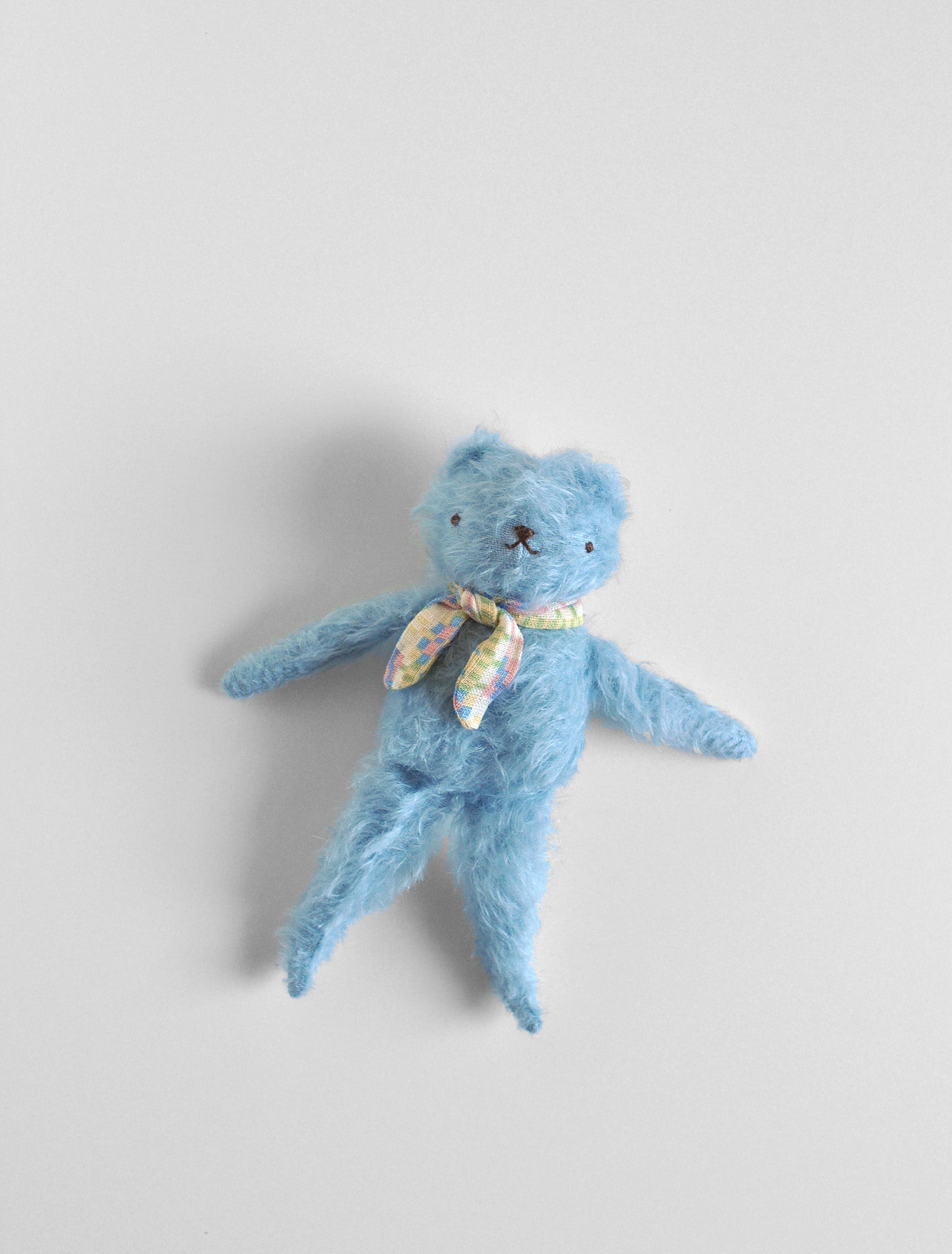 Not suitable for children still mouthing toys, but perfect for cuddling and pretend play. Although there are no small parts to come loose on this bear, the mohair can be pulled or chewed off creating a choking hazard for young children.