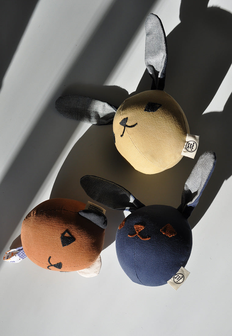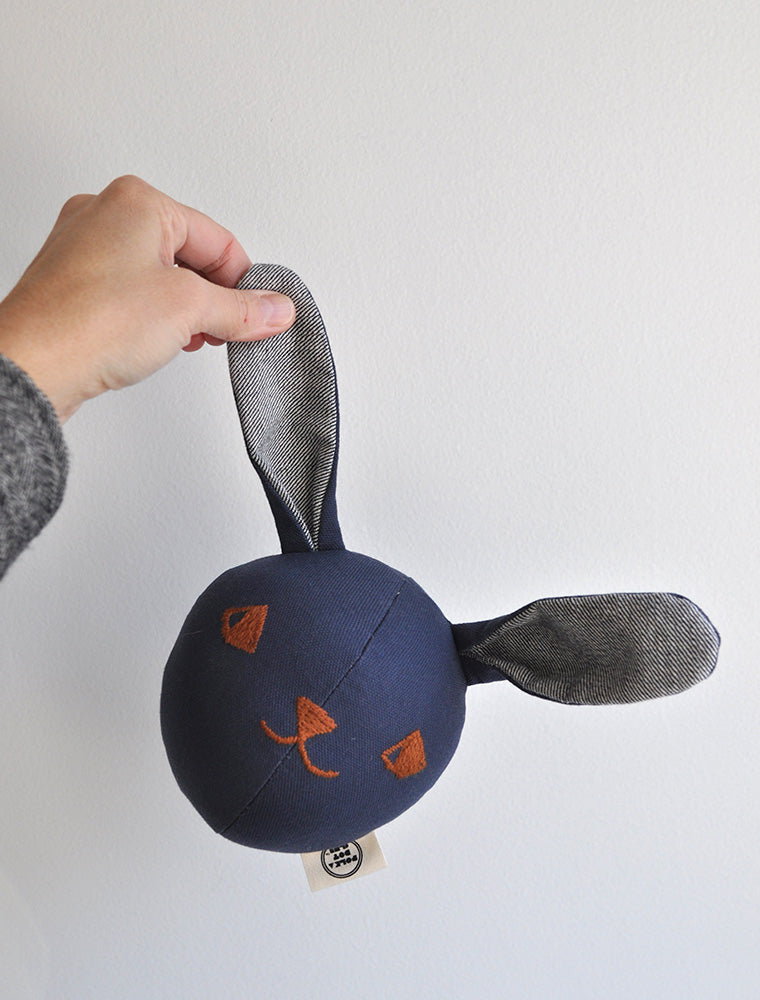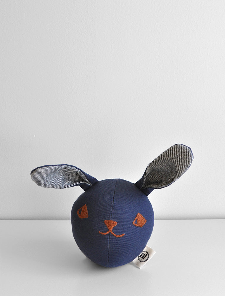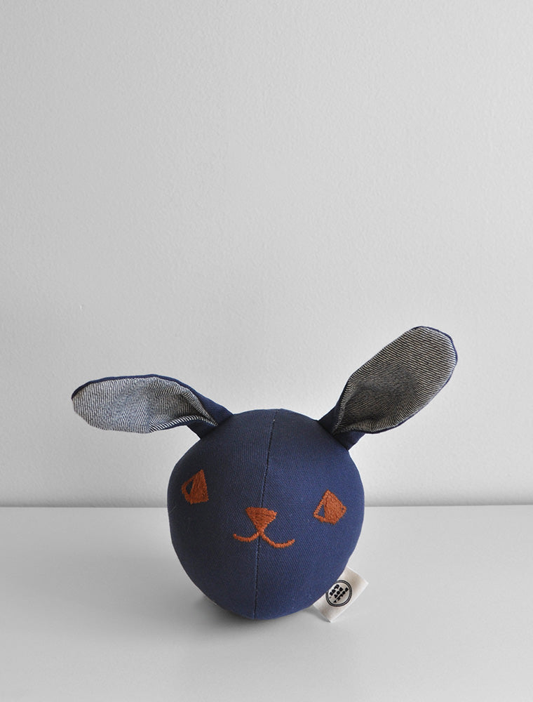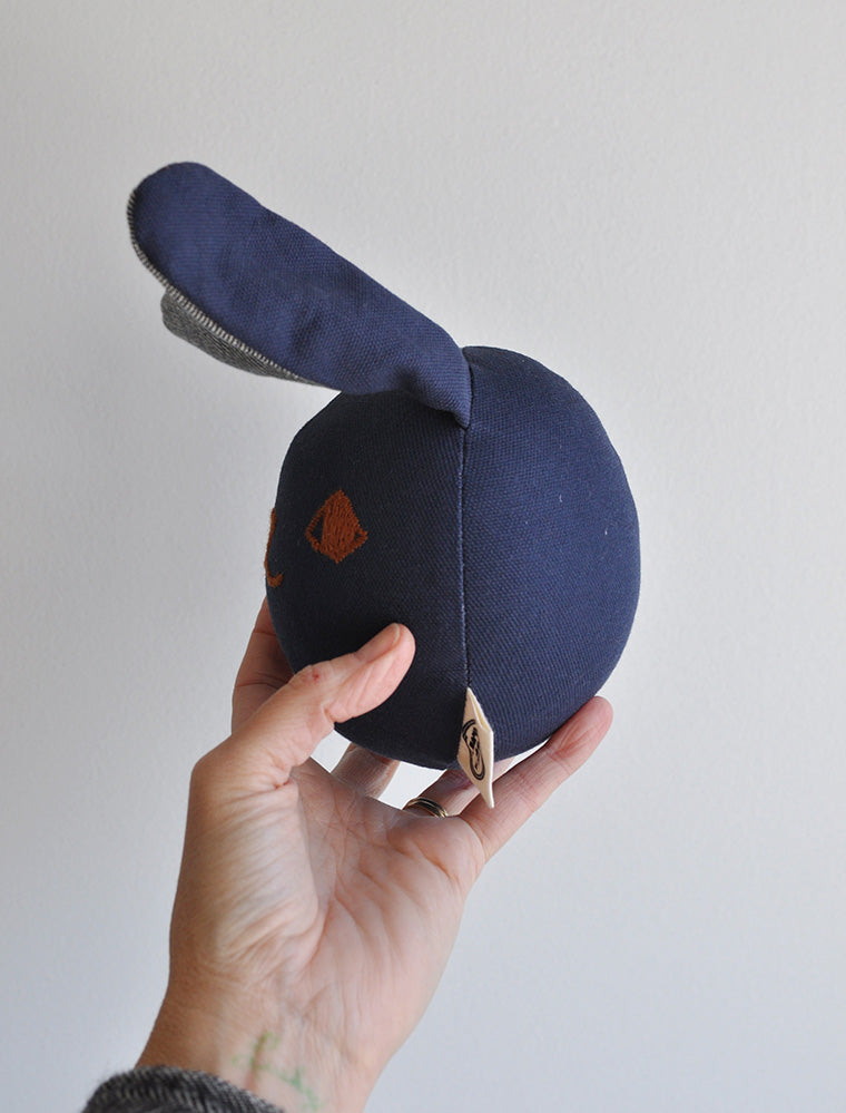 PDC Rattle Ball - Rabbit - Navy with Brown Embroidery