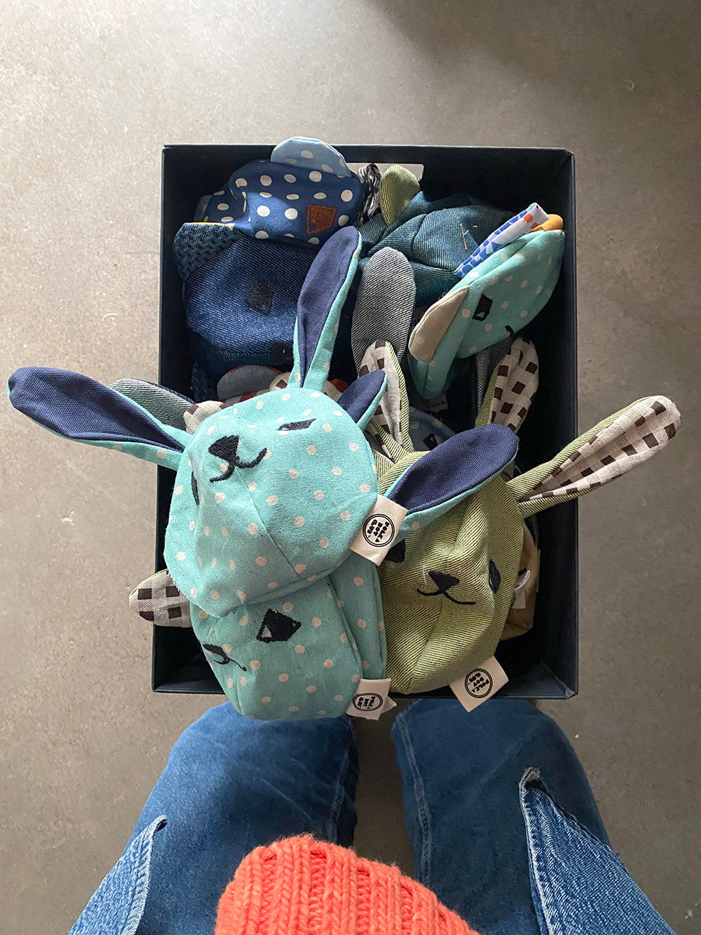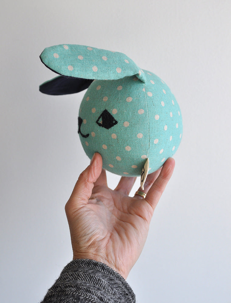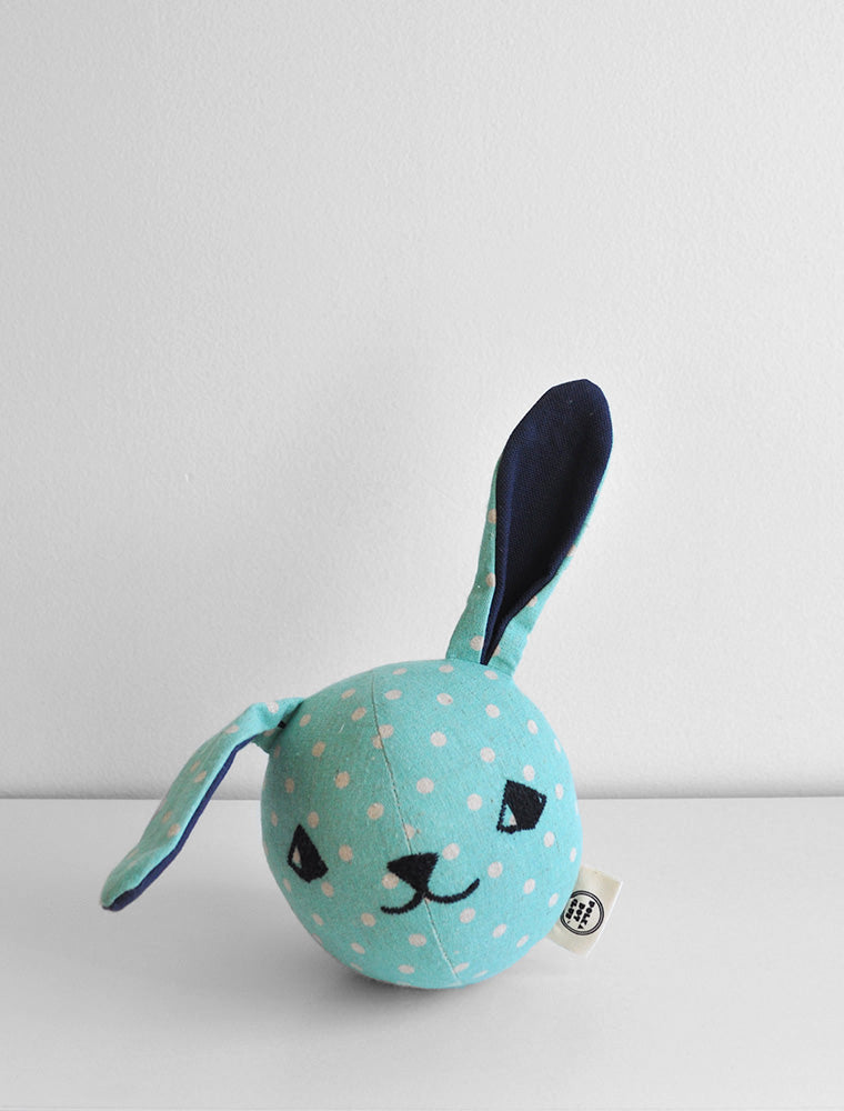 PDC Rattle Ball - Rabbit - Turquoise Dot - Navy Ears