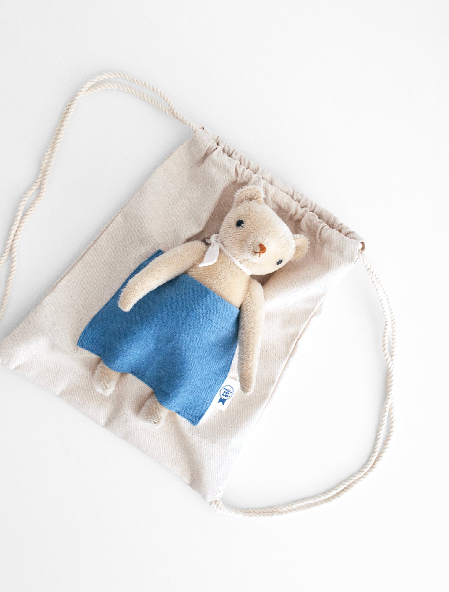 A Organic Canvas Day pack for all your adventures. Front pocket fits most PDC toys so they can tag along on all outings*
