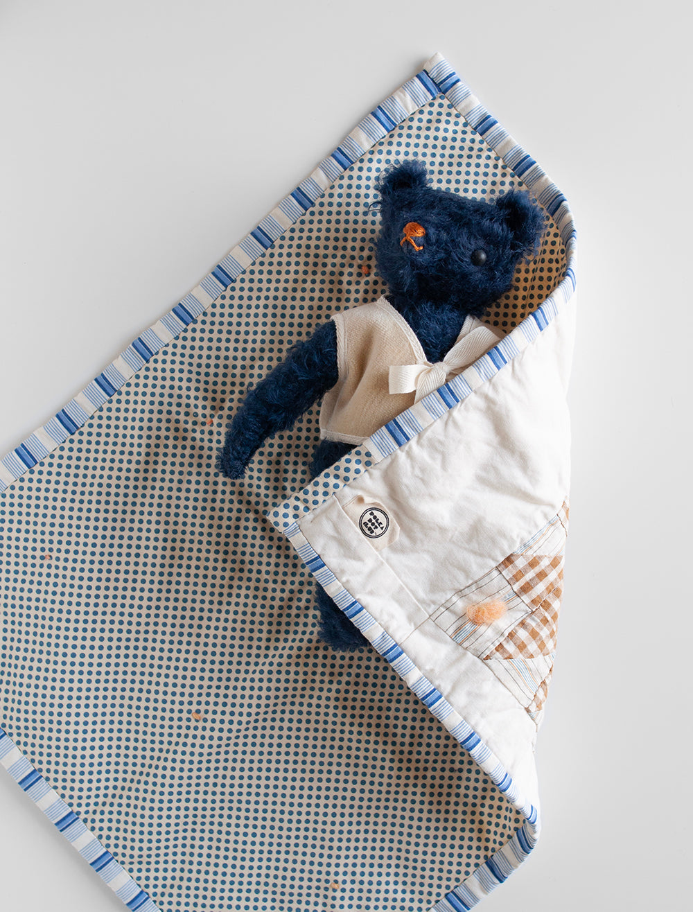 made with 70+ year old hand pieced quilt blocks sew into new little quilts. Hand Tied with colorful 100% wool- Laundered after finished to get that lived in look and feel that only vintage quilts have.