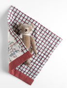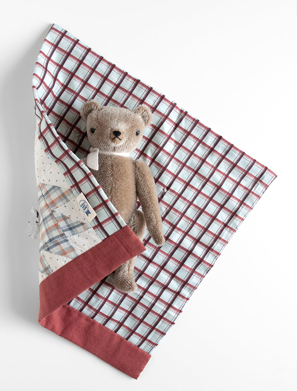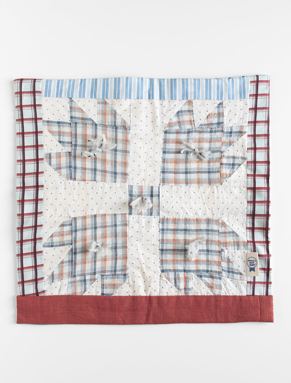 made with 70+ year old hand pieced quilt blocks sew into new little quilts. Hand Tied with colorful 100% wool- Laundered after finished to get that lived in look and feel that only vintage quilts have.