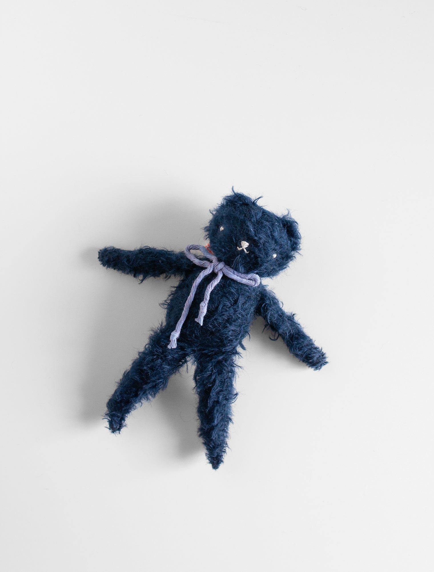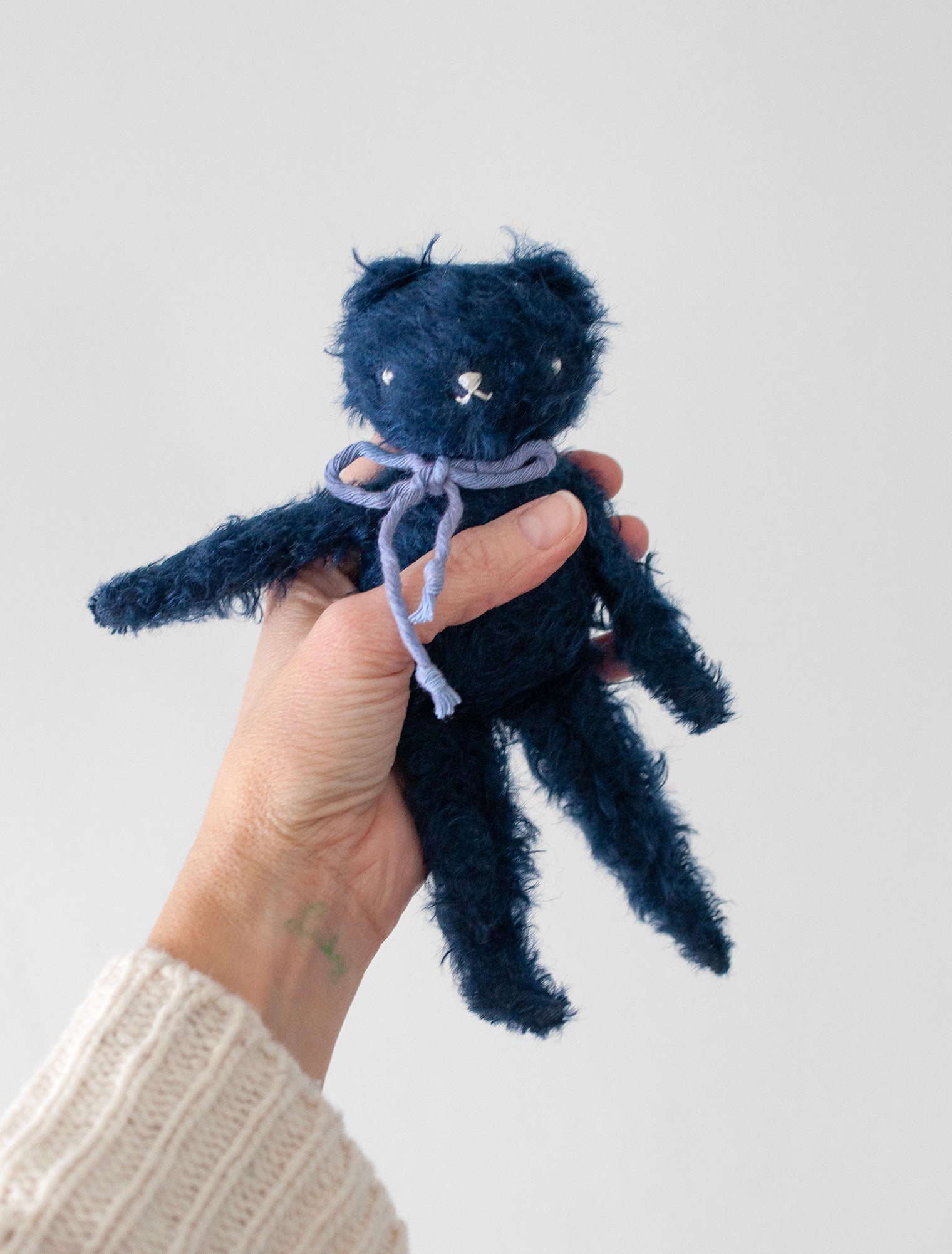 Not suitable for children still mouthing toys, but perfect for cuddling and pretend play. Although there are no small parts to come loose on this bear, the mohair can be pulled or chewed off creating a choking hazard for young children.