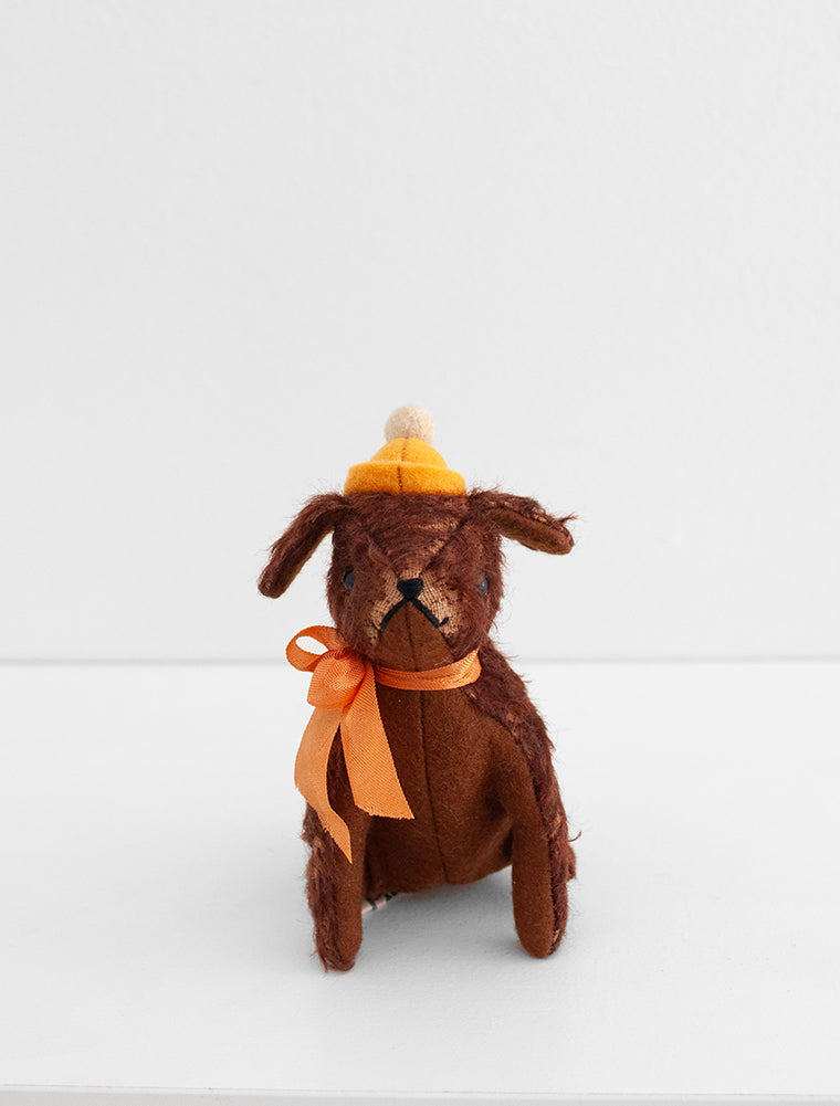 All dogs are lightly over-dyed as part of the process of making these soft-sculptures.