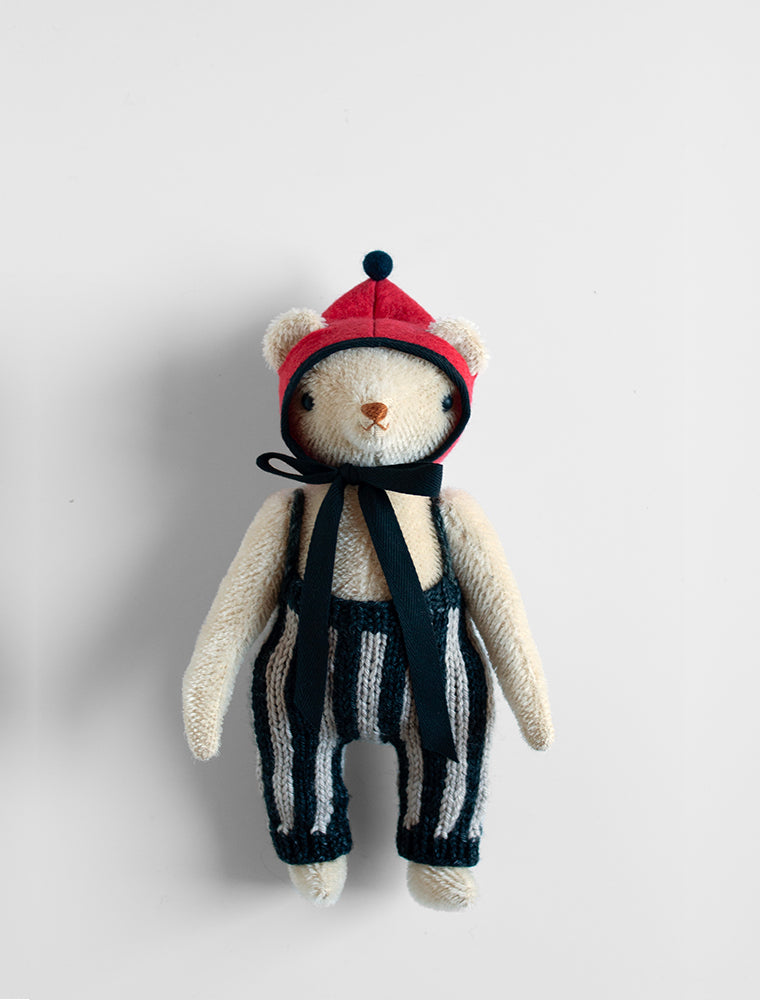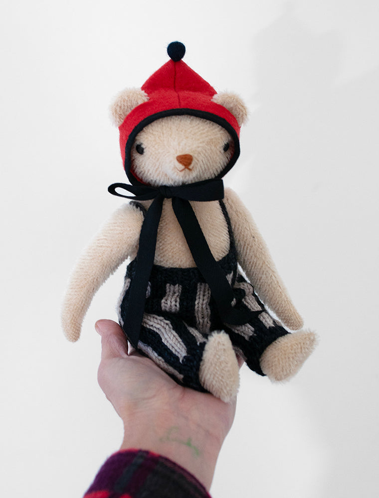 The quintessential bear in the most special outfit. There is so much time and care that goes into making each of these Classic Bears. Wrapping them in hand knit merino wool and a hand dyed wool Bonnet too, makes them just that much more special.