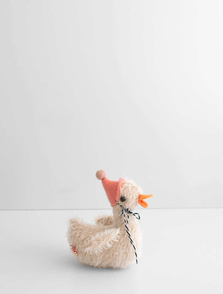 Mohair Ducklings ready for a celebration donning a wool party hat.