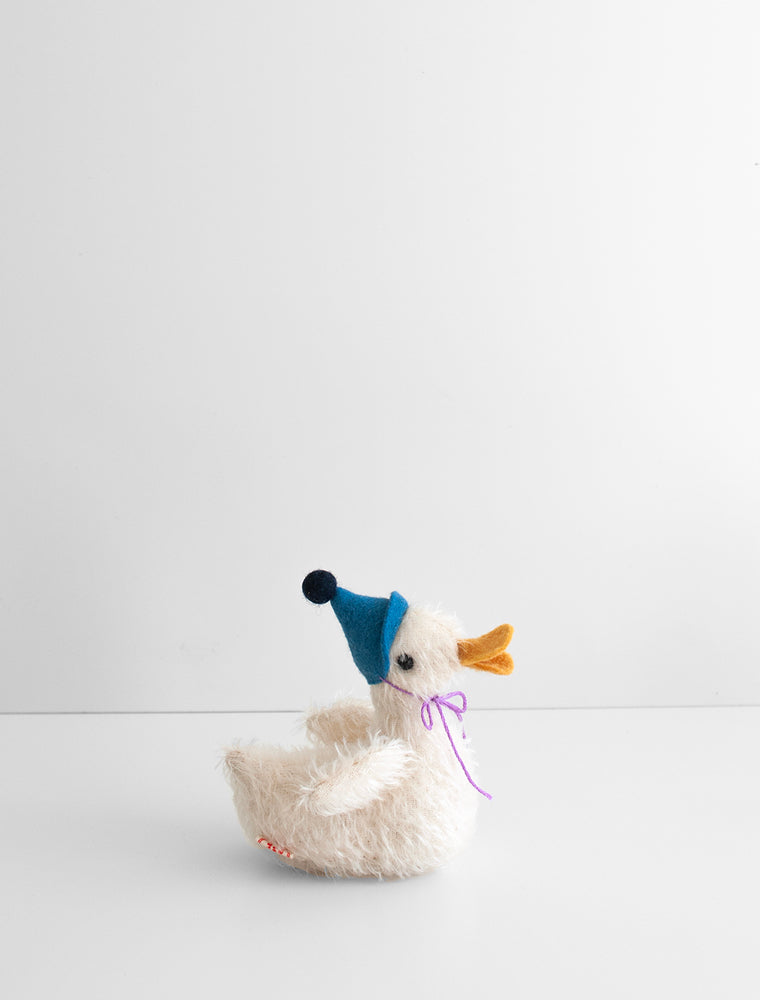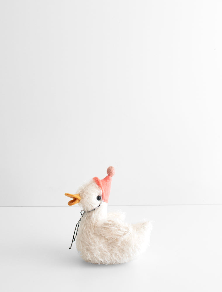 Mohair Ducklings ready for a celebration donning a wool party hat.