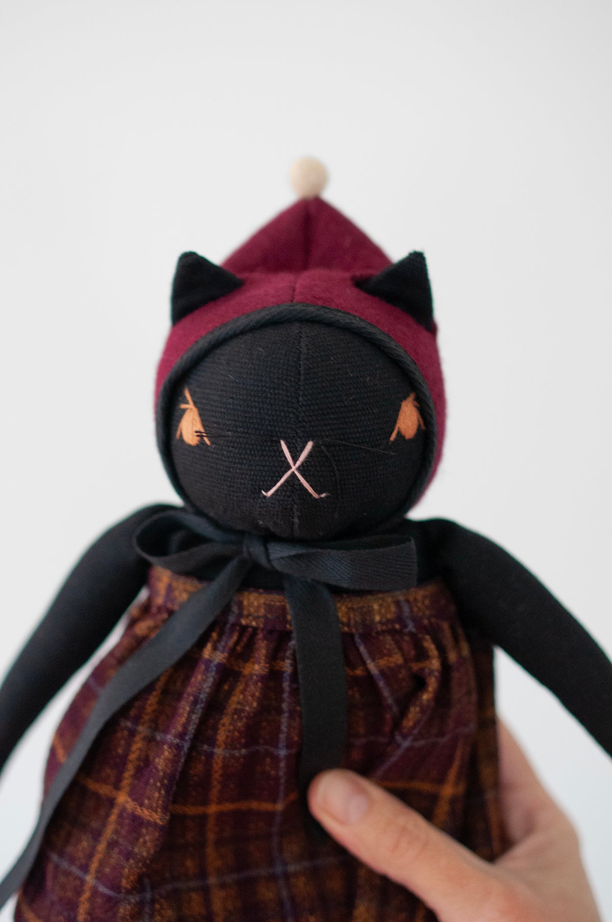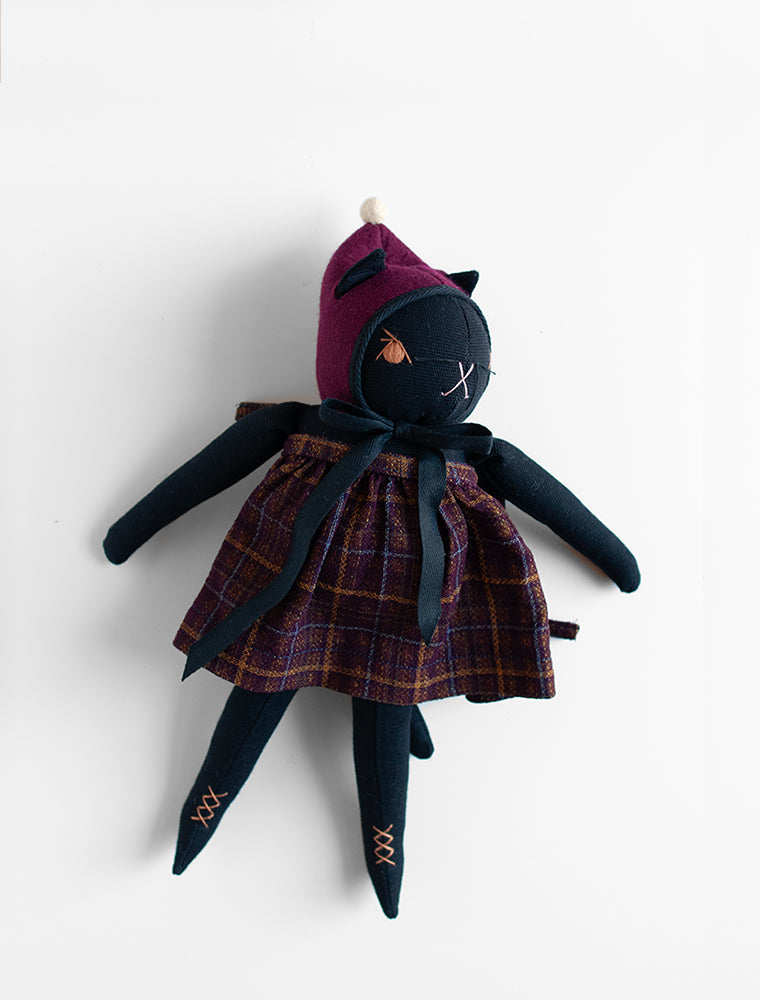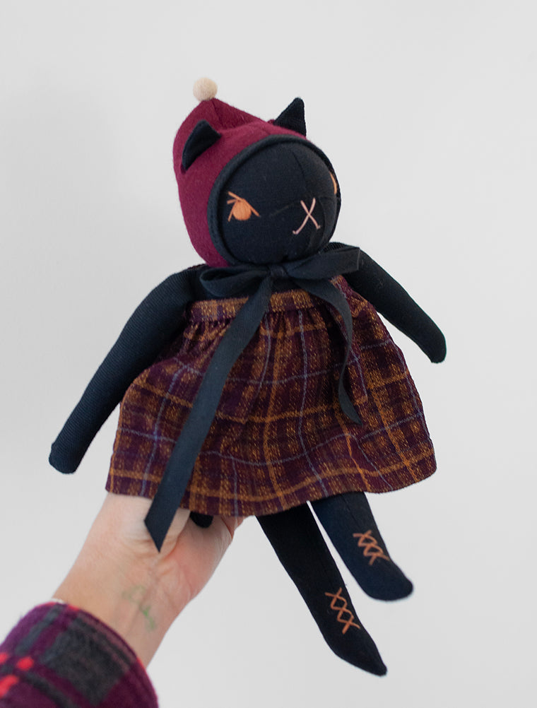 The Last of the Rabbits and Cats made in Peru- dressed in the coolest chunky Tie Skirt and wool felt bonnet
