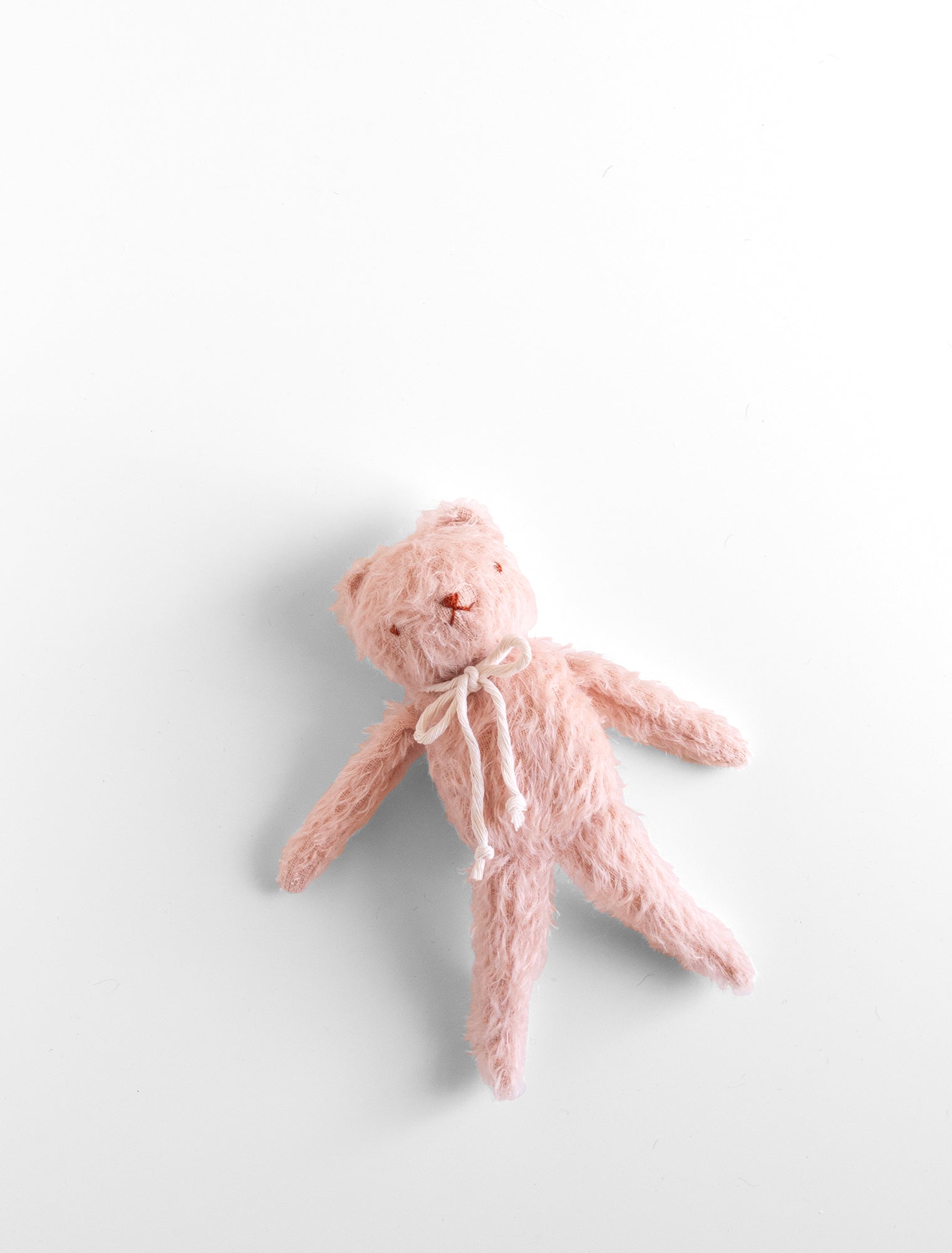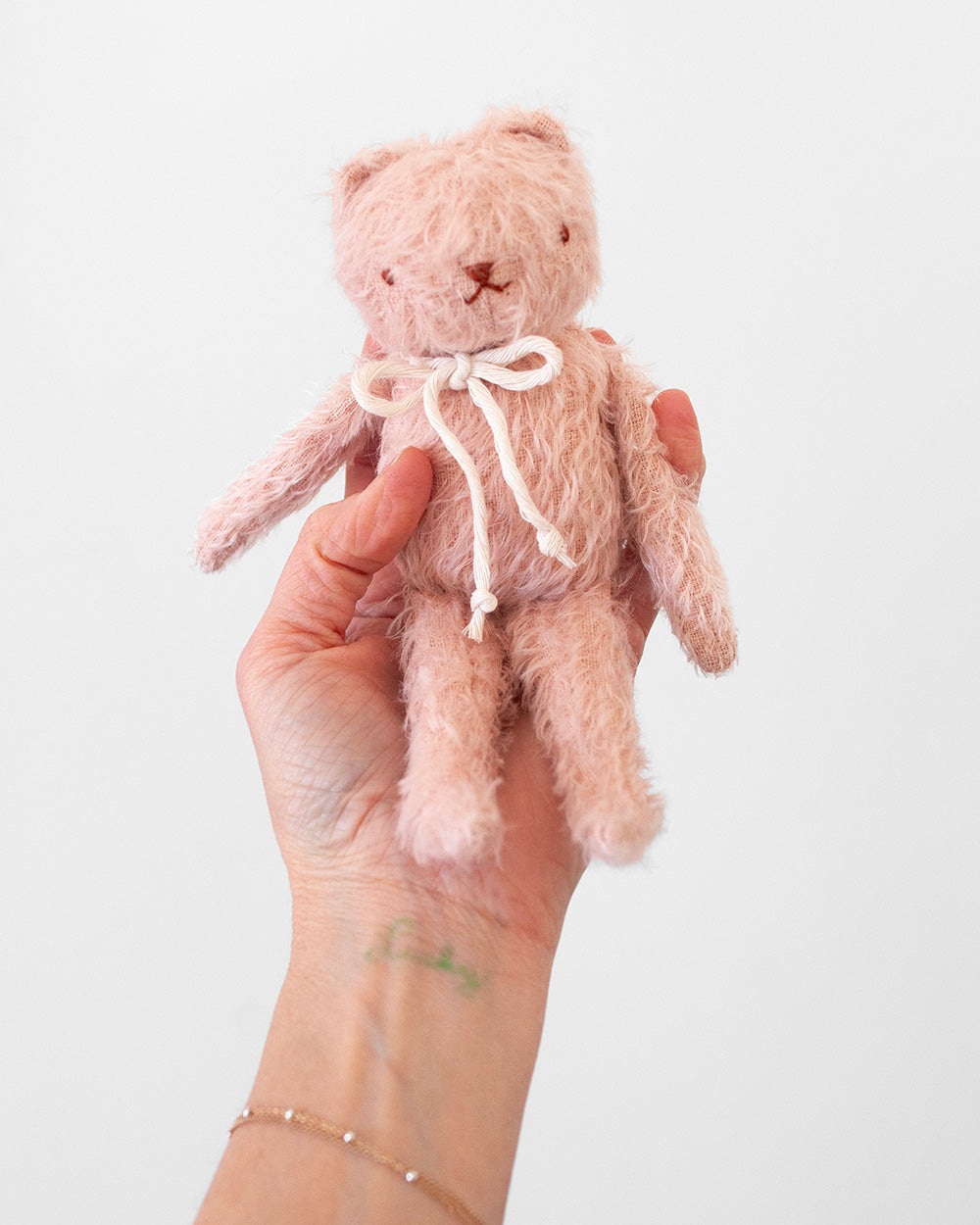 Not suitable for children still mouthing toys, but perfect for cuddling and pretend play. Although there are no small parts to come loose on this bear, the mohair can be pulled or chewed off creating a choking hazard for young children.