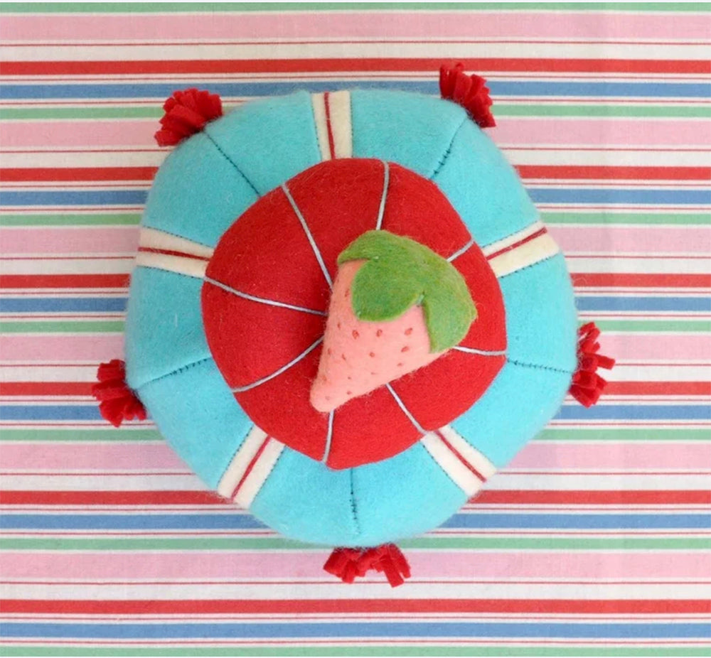 Three takes on traditional pin cushion craft and construction each designed for beauty and function. The Simple Tomato, Urchin, and Strawberry are perfect sewing projects for the beginner or advanced sewer. All pieces are designed to be made with 100% wool felt and stuffed with excelsior and sand.