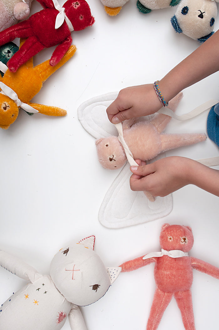 A little imagination goes a long way. Gauzy Cotton Butterfly Wings for most PDC Toys. They stay securely in place making them perfect for imaginative play, cuddling, or just for marveling at their cuteness.