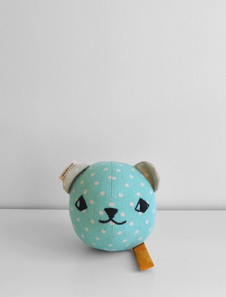 PDC Rattle Ball - Bear - Turquoise Dot with Tan Dot Ears