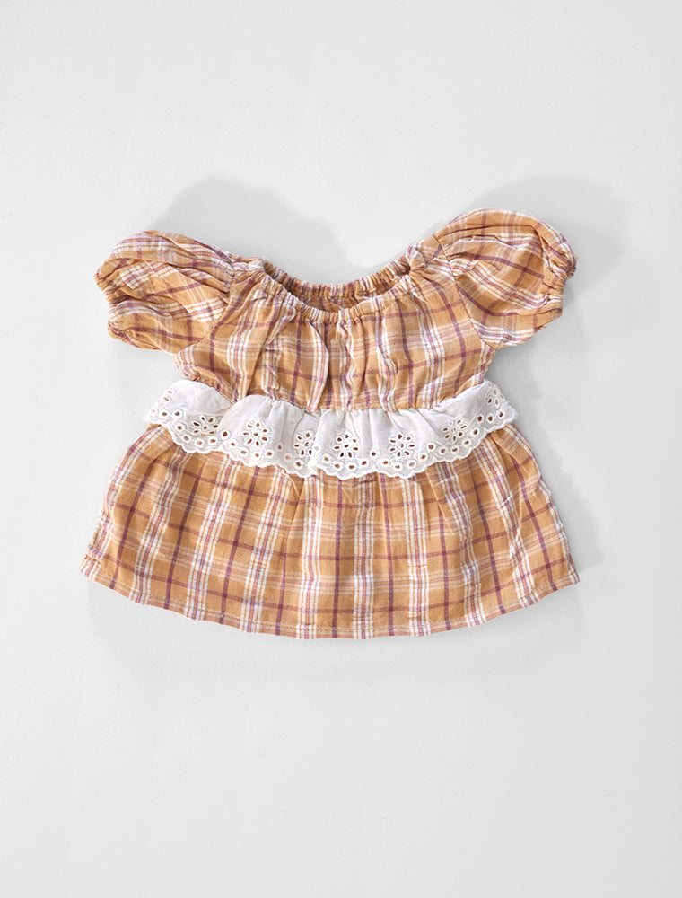 A scaled down version of the Apolina SS20 "Hattie" Hay Check Dress made just for the Polka Dot Club