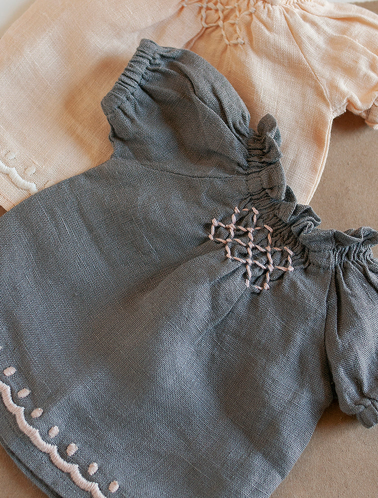 A scaled down version of the Apolina FW21 "Mia" Linen Dress, made just for the Polka Dot Club