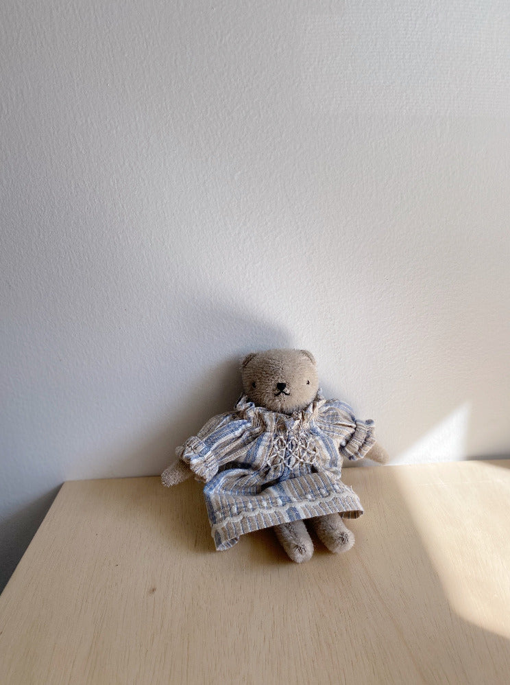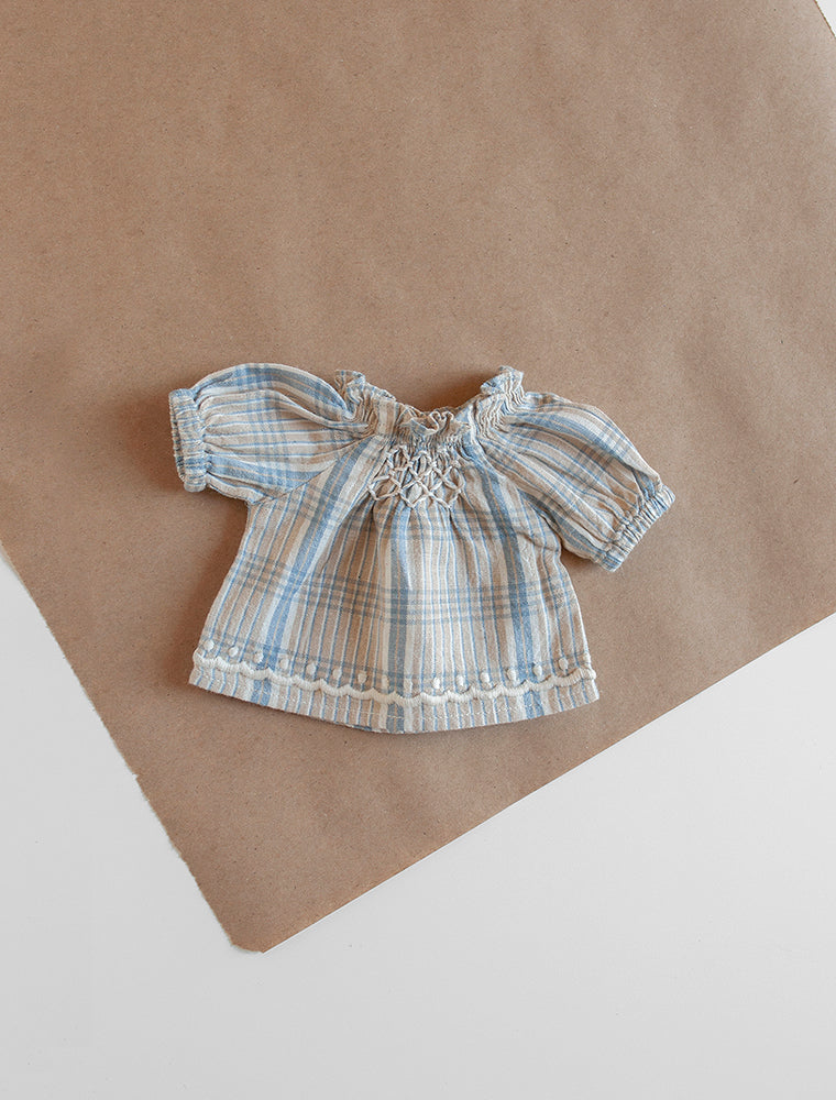 A MINI scaled down version of the Apolina FW21 "Mia" Cotton Dress in Blue Farm Check, made just for the Polka Dot Club