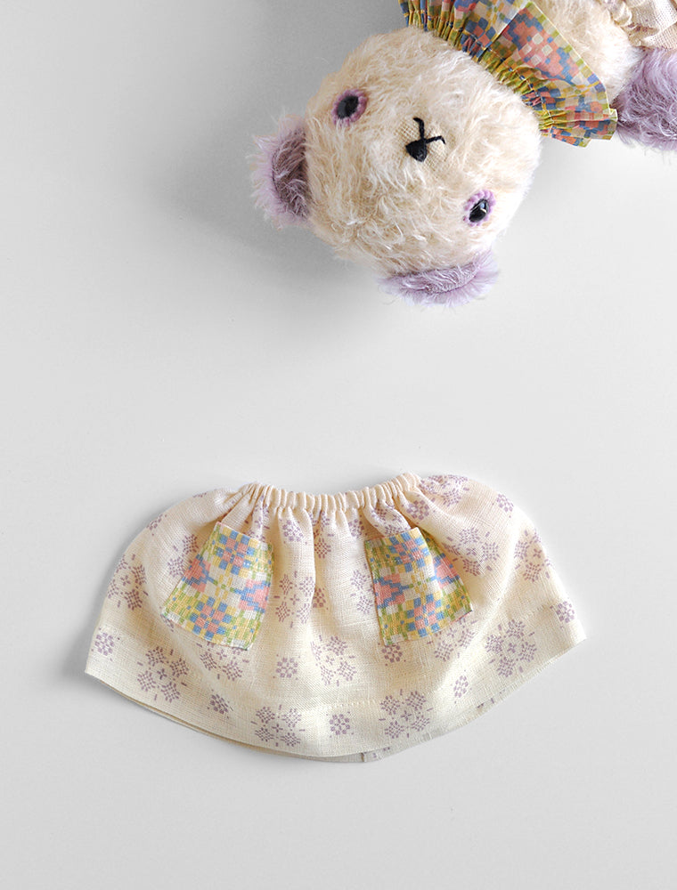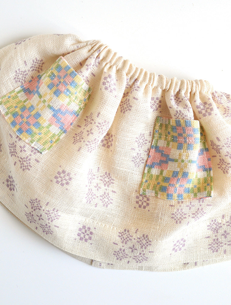 Apolina's much loved linen prints 'Solva Print' and 'Corwen Calico' together in this easy on-off Skirt with tiny pockets made just for the Polka Dot Club.