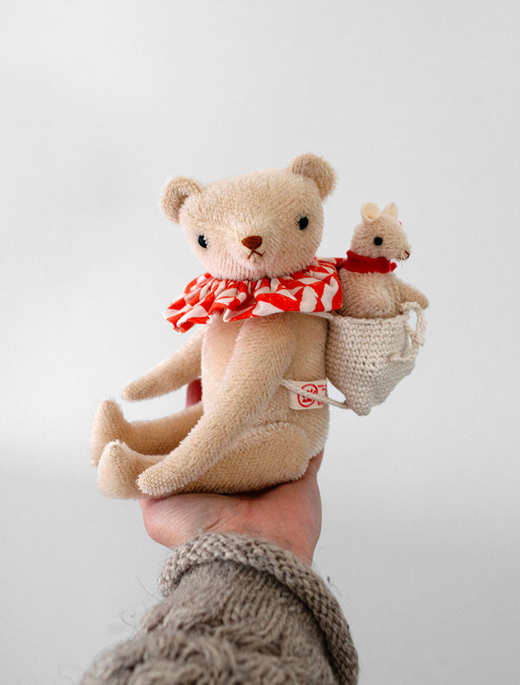 Fits nearly all PDC Toys: Classic Bear, PDC Big Bear, PDC Bear, Medium & Large Rabbits. Baby Rabbits can ride in the mini-backpack as well as mice. See photos for fit of backpack with mice, baby rabbits, and on Classic Bears, Medium Rabbits and Large Rabbits all pictured here.