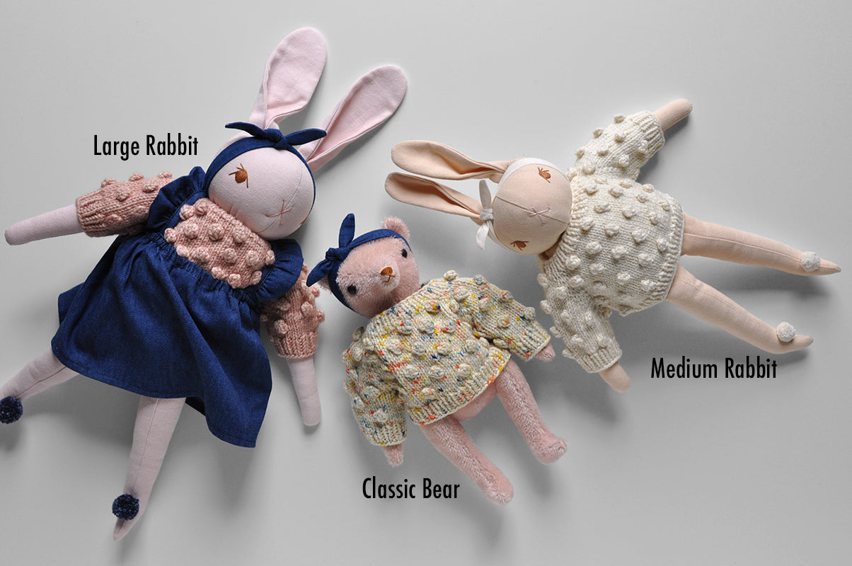 Fits: Large Rabbit/Cat, Medium Rabbit (oversized), Classic Bear (oversized), and PDC Big Bear (with rolled sleeves), and Dolly