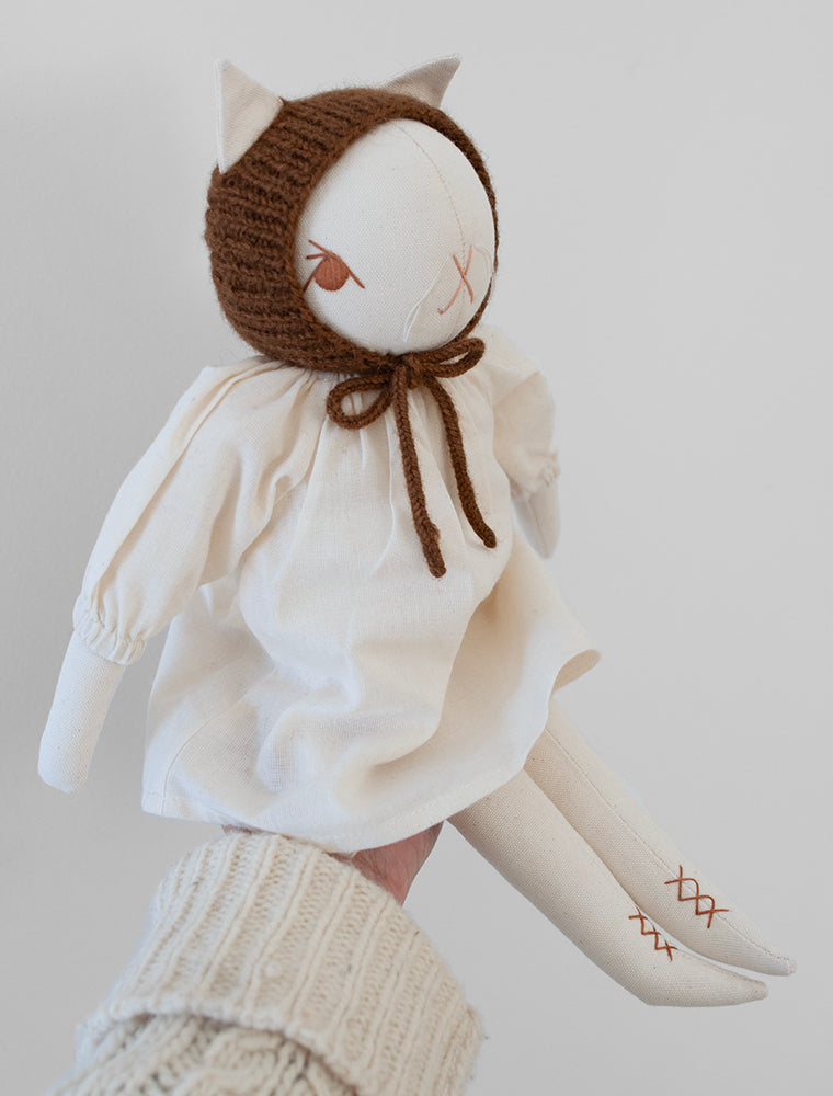 PDC Large Cat in Organic Dress & Hand Dyed Bonnet