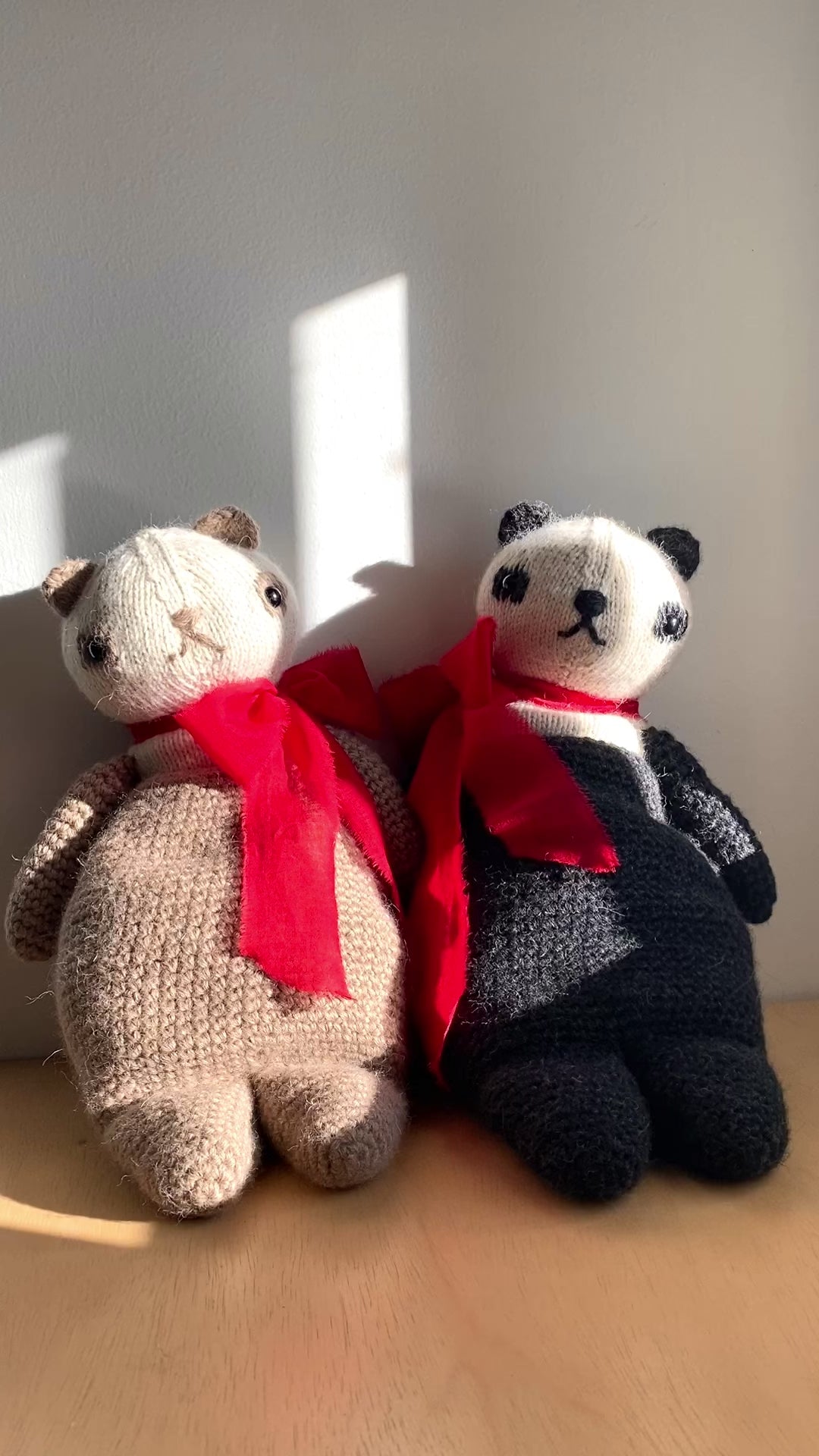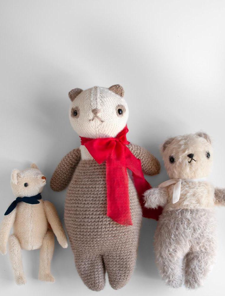 Over a year in the works- these hand knit and crocheted Big Bears are a labor of Love. They're squishy, cuddly, and feel wildly great to hug. Stuffed with 100% wool, they're a simple object that's so more than the sum of it's parts.