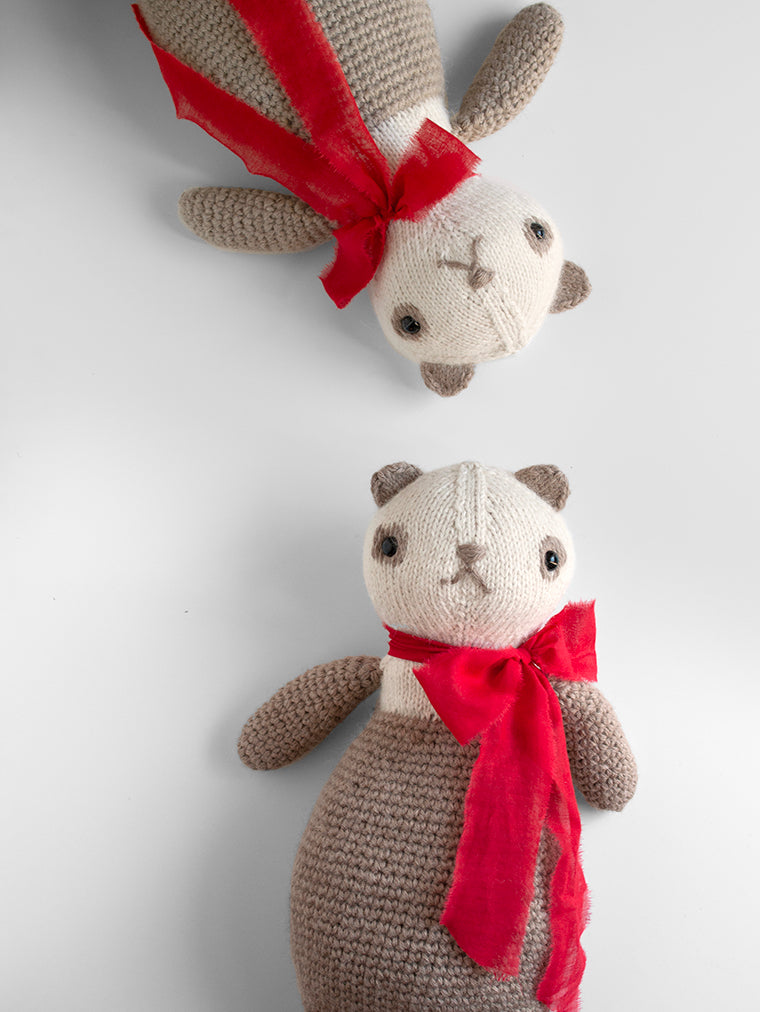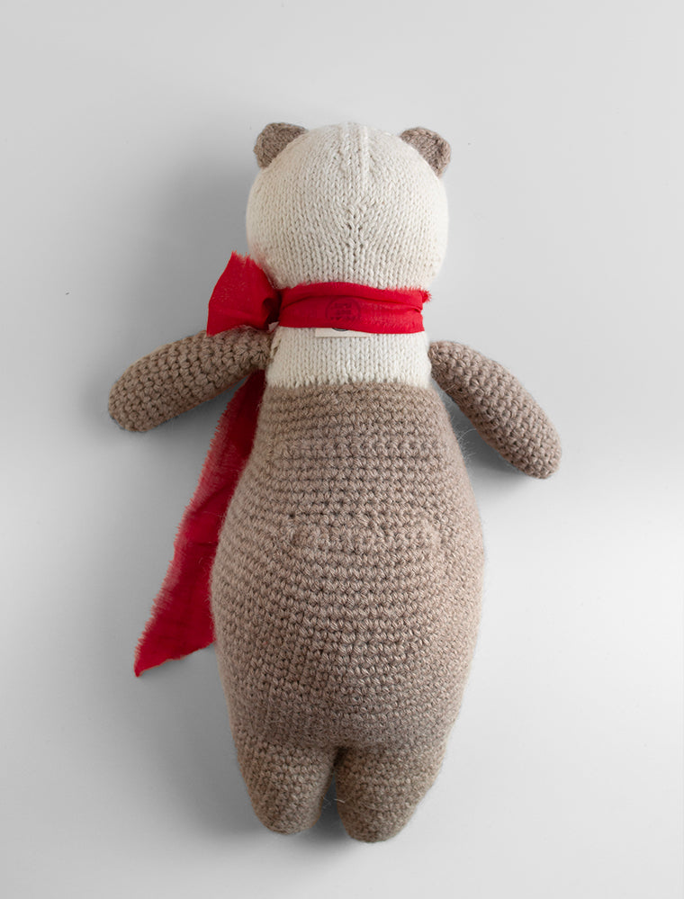 Over a year in the works- these hand knit and crocheted Big Bears are a labor of Love. They're squishy, cuddly, and feel wildly great to hug. Stuffed with 100% wool, they're a simple object that's so more than the sum of it's parts.