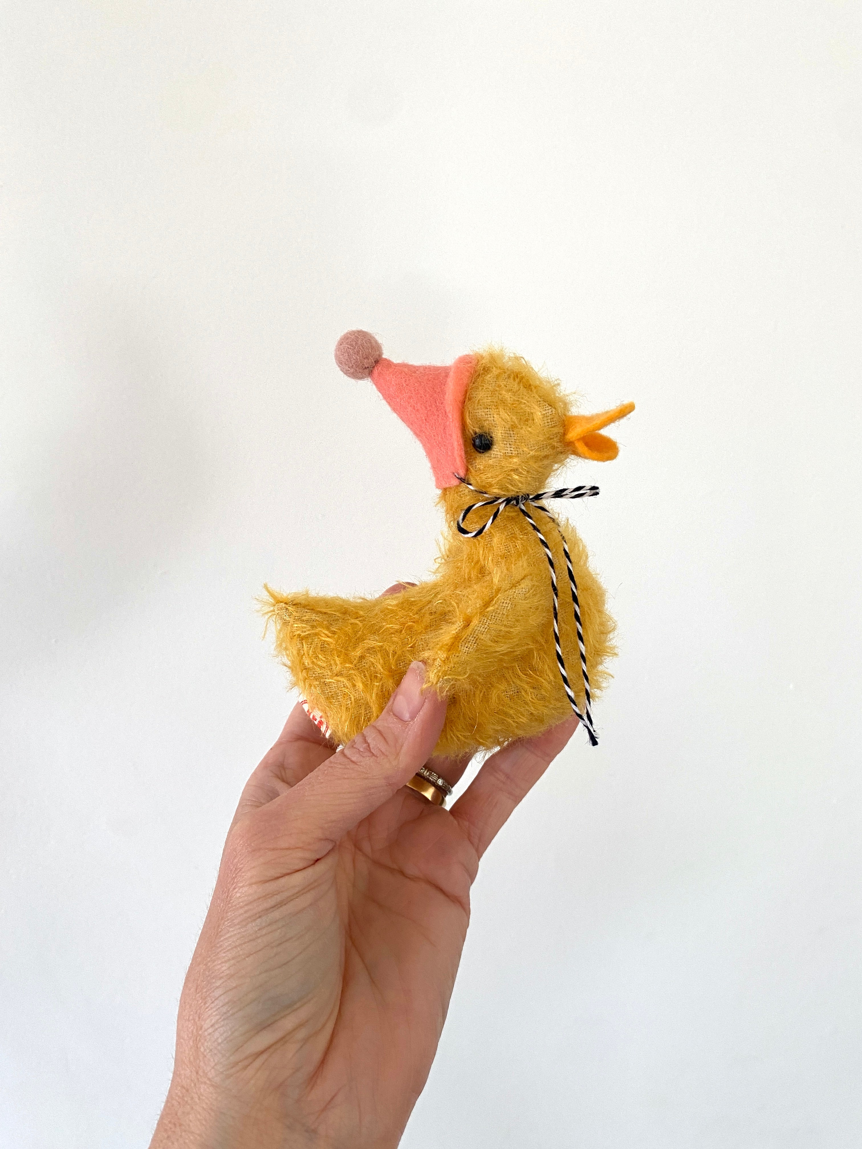 ** Last years Ducks were stuffed with excelsior. If you want to add to your collection with a similar feel, place your order to be sure you don't miss your duck color of choice and then email me for a special order Duckling stuffed with excelsior and I'll see what I can do. Excelsior is much harder to work with so the fee to add this is +$15.