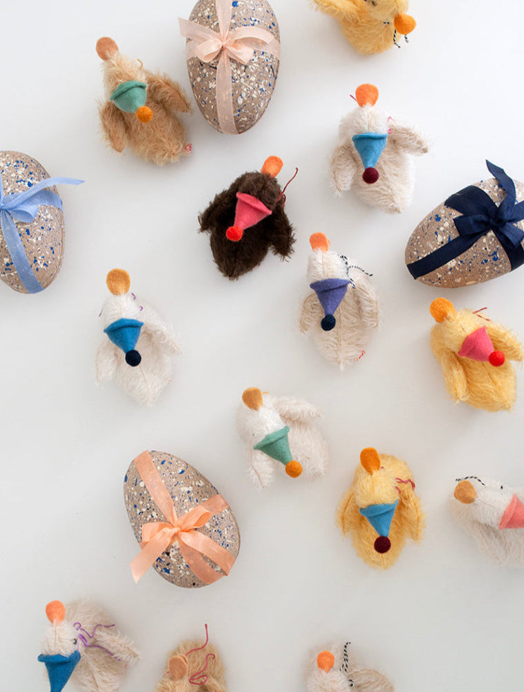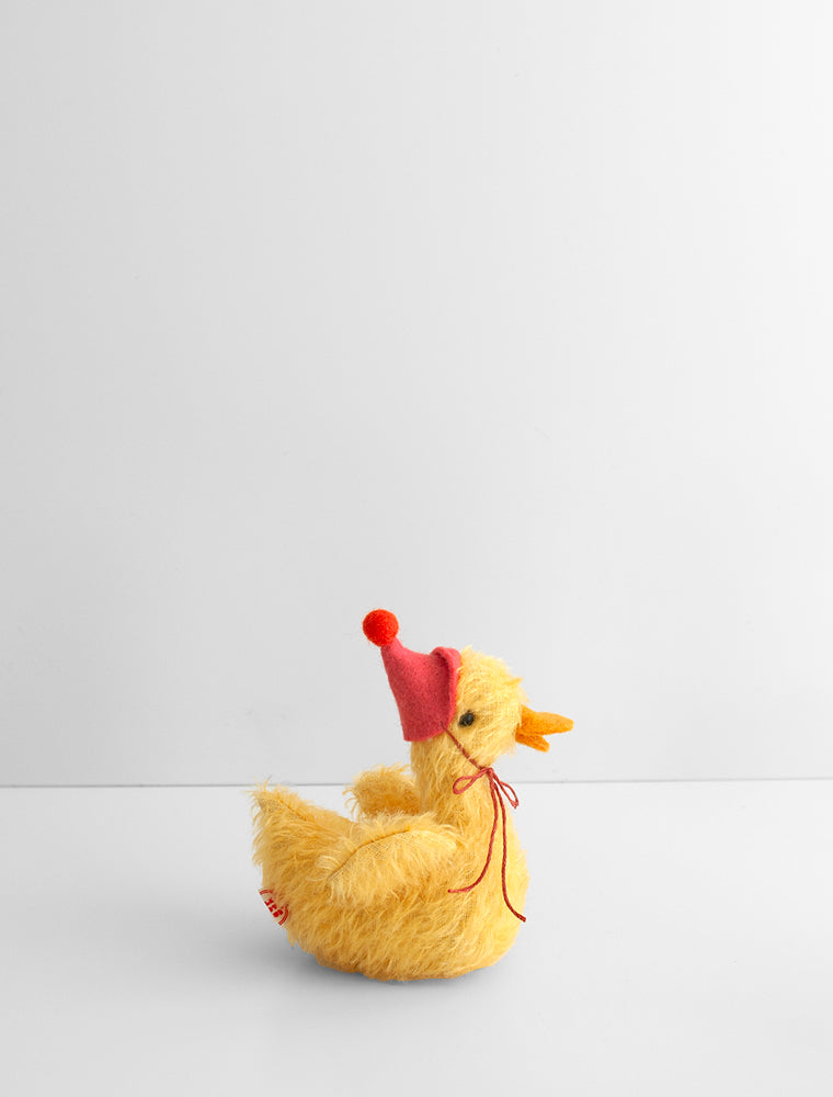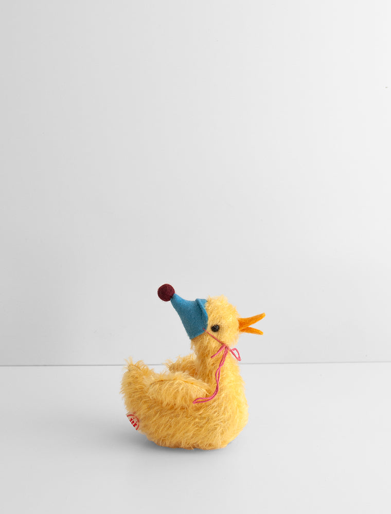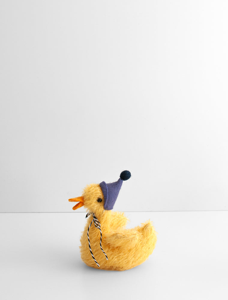 Mohair Ducklings ready for a celebration donning a wool party hat.